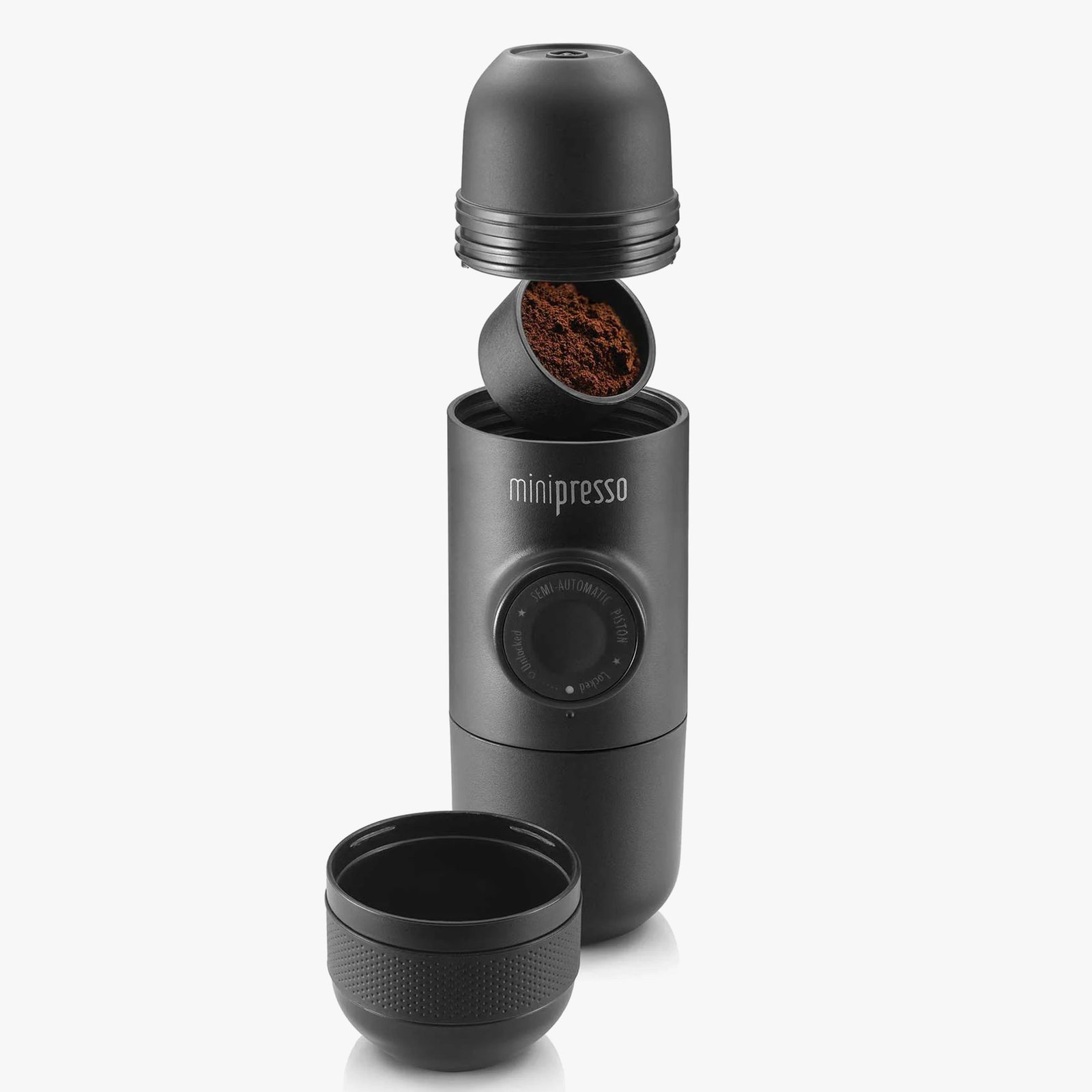 • تحتاج إلى إضافة الماء المغلي. لا يمكن تسخين الماء. Minipresso GR هو خيارك الأفضل للاستمتاع بما يصل إلى 50 مل من قهوة الإسبريسو الأصلية في المنزل وفي المكتب وأثناء التنقل.
